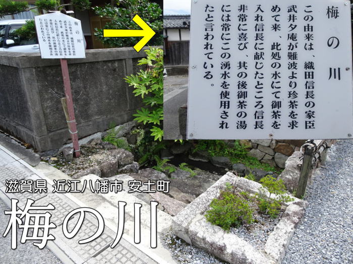 城下町跡を歩いて気付くのが湧き水が多いということ。これは梅の川といって、川ではなく井戸。信長の家臣・松井夕庵がこの梅の川の水でお茶を点て、信長に献じたところ、信長が非常に喜んで、その後、茶の湯にこの湧き水を使用したとのこと。信長のお気に入りの水です。