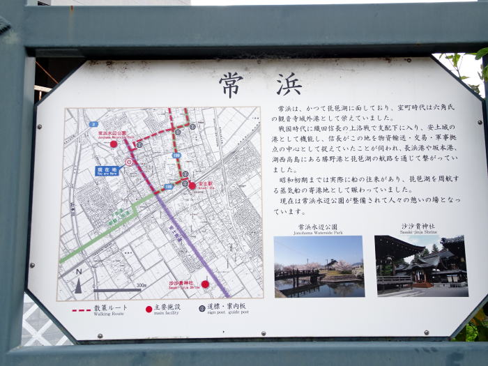 昭和初期までは実際に船の往来があり、琵琶湖の周航する蒸気船の寄港地として賑わっていました。現在は常浜水辺公園が整備されて人々の憩いの場となっています。