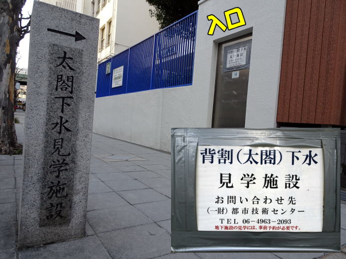 大阪市立南大江小学校の前に背割下水(太閤下水)の見学施設があります。これはいつでも誰でも入れるものではなく、事前予約が必要です。